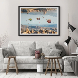 - Tento plagát zobrazuje teplovzdušné balóny vznášajúce sa nad skalnatým terénom. Ideálny do moderného interiéru. Súčasťou je čierny rám. Rozmer: 50x70 cm.