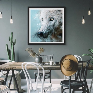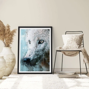 Plagát v čiernom ráme - Portrét vlka s umeleckými detailmi akvarelu - 50x70cm - Zoznámte sa s vlčou dušou - Moderná nástenná dekorácia do obývacej izby a spálne ARTTOR