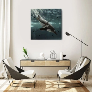 Nástenné hodiny - Dynamický záber tučniaka plávajúceho pod vodou - 30x30cm - Vitajte v mojom svete - Moderná nástenná dekorácia do obývacej izby, kuchyne a spálne ARTTOR