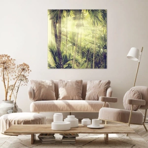 Pohľad na tropický les plný paliem symbolizuje pokoj a kontakt s prírodou, inšpiruje k chvíľke oddychu a zamyslenia. Obraz je vyrobený z najkvalitnejších materiálov, čo zaručuje odolnosť a intenzívne farby, ktoré potešia každého milovníka prírody.