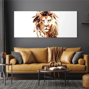 - Umelecký akvarelový portrét leva na bielom pozadí. Tento motív symbolizuje silu, dravosť a eleganciu, dokonale sa hodí do moderného aj klasického interiéru.