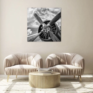 „Dobyvateľ nebies“ je sklenený obraz, ktorý priťahuje pozornosť svojou jedinečnou témou a eleganciou. Zobrazuje detail vrtule lietadla, ktorá je zobrazená v čiernobielych tónoch, čo dodáva kompozícii retro charakter. Mechanické detaily sú dokonale viditeľné, čo zdôrazňuje industriálny štýl a dodáva obrazu jedinečný výraz.