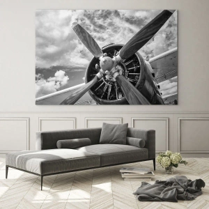 Detailný motív vrtule lietadla v čiernobielej farbe je perfektným riešením pre industriálne a minimalistické interiéry. Obraz prináša do priestoru eleganciu a inšpiráciu a poteší svojimi technickými detailmi a štýlovým remeselným spracovaním.