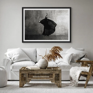 Plagát v čiernom ráme - Čiernobiely záber tanečníka v dynamickom pohybe na pozadí surovej steny. - 50x70cm - Plné vášne - Moderná nástenná dekorácia do obývacej izby a spálne ARTTOR