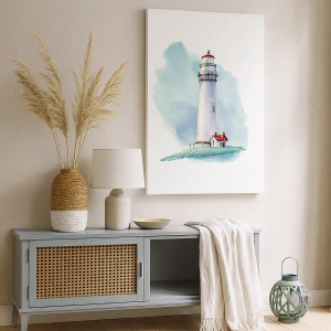 Maják symbolizuje spoľahlivosť a pokoj a jeho klasická architektúra dokonale ladí s jemnými akvarelovými odtieňmi. Obraz vyžaruje pokoj a vytvára atmosféru ideálnu na relaxáciu a reflexiu. Vďaka použitiu jemných farieb a jednoduchej formy sa toto umelecké dielo hodí do rôznych štýlov interiérového dizajnu, od klasického až po moderný.