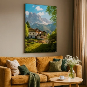 - Malebná horská dedinka na úpätí Álp. Zelené lúky, tradičné domy a majestátne štíty v pozadí vytvárajú harmonickú kompozíciu. Dokonalý výhľad, ktorý prináša do interiéru pokoj a prírodnú krásu.