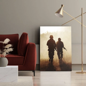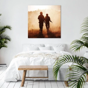 - Obraz na plátne zobrazujúci vojakov pochodujúcich rannou hmlou na pozadí prírody. Dokonalá dekorácia na navodenie atmosféry pokoja a odhodlania v akomkoľvek interiéri.