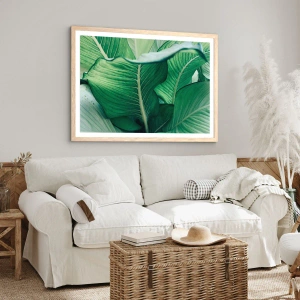 Plagát v ráme zo svetlého duba - Intenzívne zelený život - 50x40 cm