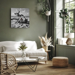 Nástenné hodiny „Morská socha“ sú mimoriadnou nástennou dekoráciou, ktorá spája surovú krásu prírody s rafinovanou jednoduchosťou. Kompozícia zobrazuje čiernobielu morskú krajinu – prázdnu pláž, pokojnú líniu horizontu a ústredný prvok: mohutný, skrútený konár vyplavený vlnami. Celé to vyjadruje náladu melanchólie, ticha a nekonečna. Fotografia prenáša diváka do priestoru kontemplácie a pokoja.