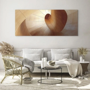 Obraz na skle - Drevená špirálová architektonická štruktúra v teplých farbách - 70x50cm - Architektonická serpentína - Moderná nástenná dekorácia do obývacej izby a spálne ARTTOR
