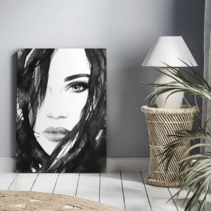 Obraz na plátne - Portrét dámy v čiernej a bielej - 80x120 cm