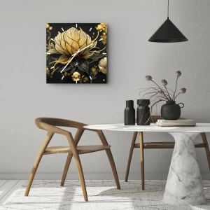 Nástenné hodiny - Zlatý a čierny kvet na tmavom pozadí - 30x30cm - Jemná krehkosť - Moderná nástenná dekorácia do obývacej izby, kuchyne a spálne ARTTOR