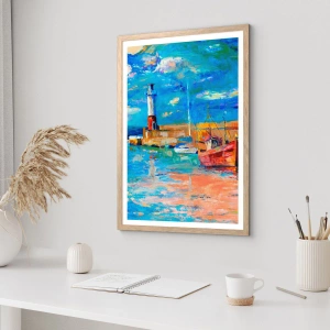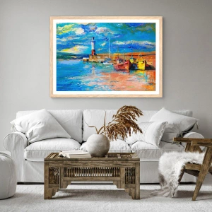 Plagát v ráme zo svetlého duba - Popoludní v dúhovom zálive - 70x50 cm