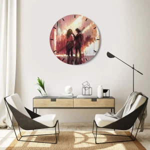Tieto jedinečné nástenné hodiny vás prenesú do sveta romantiky a emócií vďaka grafike zobrazujúcej zamilovaný pár na abstraktnom svetlom pozadí. Jemné farby a delikátna kompozícia vytvárajú atmosféru blízkosti a tepla, ideálnu na vytvorenie útulného interiéru.