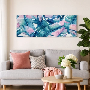 Nástenná umelecká tlač - V banánovom háji - Banánové listy v odtieňoch modrej a ružovej
