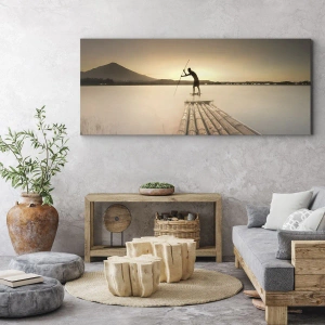 - Tento obraz zobrazuje muža na bambusovom plti počas západu slnka. Pokojný a harmonický motív, ideálny na dodanie tepla a prírodného šarmu do každého interiéru.