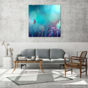 - Očarujúci obrázok motýľa na tráve v pastelovom svetle. Dokonalá dekorácia, ktorá vnesie jemnosť a harmóniu do každého interiéru.