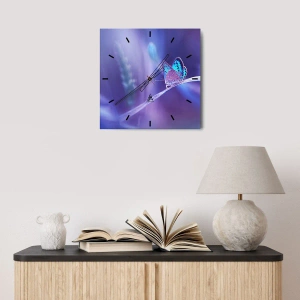Nástenné hodiny - Jewel of Nature - Motýľ na pozadí jemných odtieňov fialovej a modrej