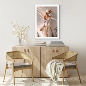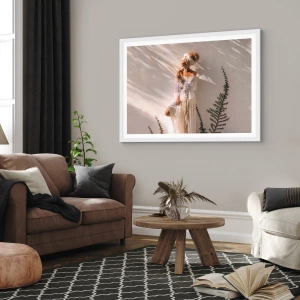 Plagát v bielom ráme - Slnko a dievča - 40x30 cm