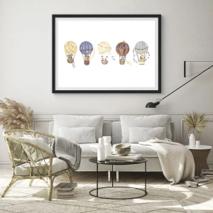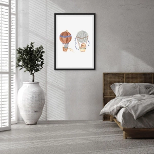 - Tento plagát v štýle akvarelu zobrazuje rozkošné zvieratká lietajúce v balónoch. Jemné farby a rozprávková kompozícia sú ideálne do detskej izby.