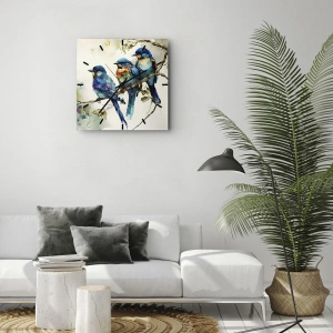 • Vtáky, Príroda, Akvarel, Umenie, zvieratá, Do kancelárie, Do pracovne, Do jedálne, Do predsiene, Do obývačky, Do spálne, Biela, hnedá, modrá, Okrúhly