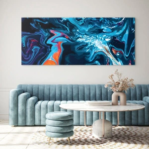 Investujte do potlače, ktorá sa stane ústredným bodom vášho interiéru. Abstraktný vzor v odtieňoch modrej je kombináciou energie, elegancie a modernity, ktorá poteší každého milovníka krásnych dekorácií.