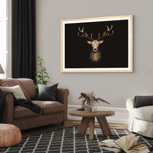 Plagát v ráme zo svetlého duba - Kubistický jeleň - 30x30 cm