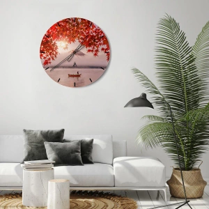 - Tieto nástenné hodiny s rozmermi 30 x 30 cm, vyrobené z odolného skla, zobrazujú malebnú krajinu s horou Fudži, jesennými listami a loďkou na jazere. Ideálne do interiérov inšpirovaných prírodou a harmóniou.