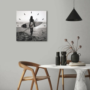 • žena, pláž, surfovanie, Čierna a biela, Ľudia, Námorná doprava, Cestovanie, Šport a Záľuby, Do jedálne, Do izby pre mládež, Do predsiene, Do obývačky, Do spálne, Šedá, čierna a biela, Štvorcový