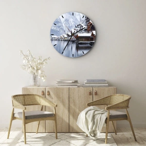 - Tieto hodiny s motívom zimnej krajiny zobrazujúcej chatrče na horskom jazere, pokryté snehom, sú dekoráciou plnou pokoja a šarmu. Sú ideálne do interiérov inšpirovaných prírodou a pokojom.