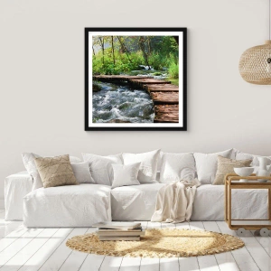 Plagát v čiernom ráme - Pri spenenom vodopáde - 30x30 cm