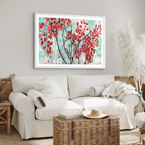 Plagát v bielom ráme - Strom v šarlátovej - 50x50 cm