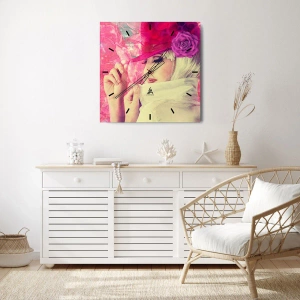 Nástenné hodiny - Retro portrét v ružovej hmle - 40x40 cm
