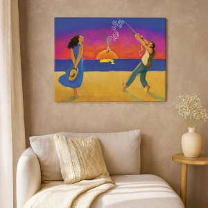 - Tento obraz zobrazuje postavy pri mori vo svetle zapadajúceho slnka. Táto farebná a umelecká kompozícia je ideálna do letných a moderných interiérov.