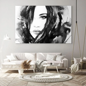 Obraz na skle - Portrét dámy v čiernej a bielej - 100x40 cm