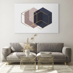 Nástenné umenie - Sila jednoduchosti - Zlaté kontúry kocky na pozadí tmavomodrej a ružovej plnnej hmoty