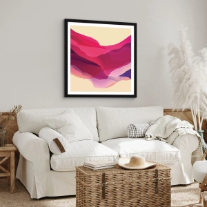 Plagát v čiernom ráme - Abstraktné vlny v odtieňoch fialovej na svetlom pozadí - 50x70cm - Fialové vlny - Moderná nástenná dekorácia do obývacej izby a spálne ARTTOR