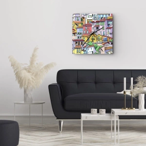 • Tieto nástenné hodiny s farebnou ilustráciou činžovných domov sú veselou a dynamickou dekoráciou interiéru. Sú ideálne do moderných, mladistvých alebo umeleckých priestorov.