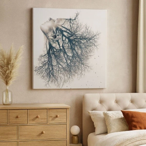 - Umelecký obraz zobrazujúci siluetu ženy prepletenú s konármi stromov. Minimalistická a symbolická kompozícia, ktorá prináša inšpiráciu a harmóniu do každého interiéru.