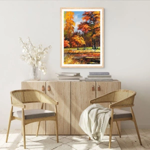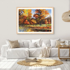 Plagát v ráme zo svetlého duba - Krajinka v zlatej a hnedej - 40x40 cm