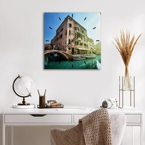 Nástenné hodiny - Benátky s mostom a vodným kanálom - 30x30cm - Benátky - Amore Mio - Moderná nástenná dekorácia do obývacej izby, kuchyne a spálne ARTTOR
