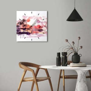 Nástenné hodiny - Pokoj trópov v červenej - 30x30 cm