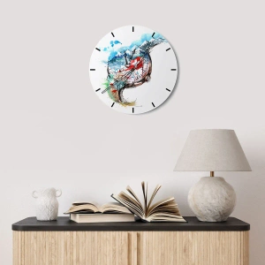 • Nástenné hodiny s motívom švajčiarskej krajiny, horami a vlajkou. Akvarelové umenie a malebné chatky vytvárajú jedinečnú atmosféru. Ideálne pre milovníkov hôr.