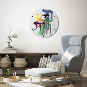 - Tieto hodiny sa vyznačujú výrazným abstraktným motívom zobrazujúcim oko, pery a farebné prvky. Ich jedinečný dizajn dodá každému interiéru umelecký a moderný nádych.