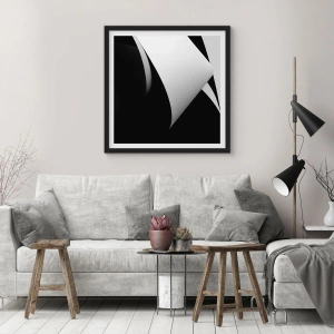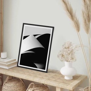 Plagát v čiernom ráme - Minimalistická abstrakcia v čiernej a bielej farbe - 50x70cm - Svetlo z hlbín tieňa - Moderná nástenná dekorácia do obývacej izby a spálne ARTTOR