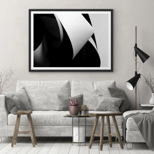 - Plagát predstavuje elegantnú čiernobielu kompozíciu, kde svetlo a tieň vytvárajú abstraktné tvary. Minimalistický dizajn a geometrické formy dodávajú interiéru moderný charakter.