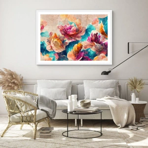 Plagát v bielom ráme - Farebné bohatstvo kytice - 40x50 cm