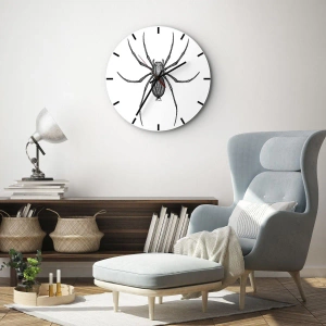 Nástenné hodiny - Disturbing Precision - Čiernobiela ilustrácia pavúka na bielom pozadí
