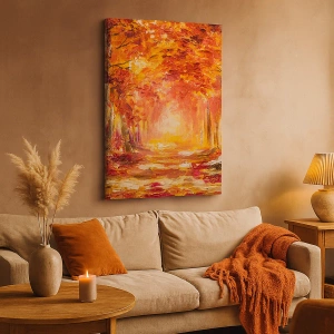 - Táto plátenná tlač zobrazuje malebný jesenný les s listami v odtieňoch medi a zlata. Je perfektná ako dekoratívny prvok, ktorý prináša teplo a harmóniu do každého interiéru.