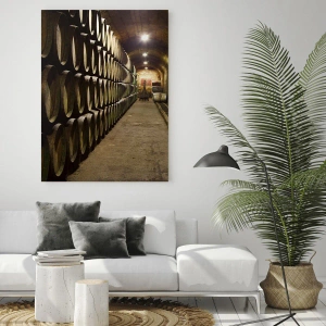 - Obraz zobrazuje atmosférickú vínnu pivnicu s radmi sudov, dokonale zachytávajúc atmosféru tradície a rustikálneho štýlu. Je to jedinečný doplnok do každého interiéru, ktorý prináša teplo a výraz.